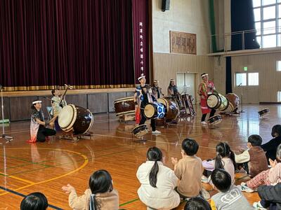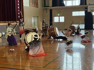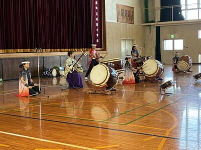 子どもたちは、身を乗り出すようにして西方小天鼓の皆さんを見ようとしたり、リズムに合わせて手拍子をしたり、身体を動かしたりと、心と体全体で和太鼓の音を味わっていました。