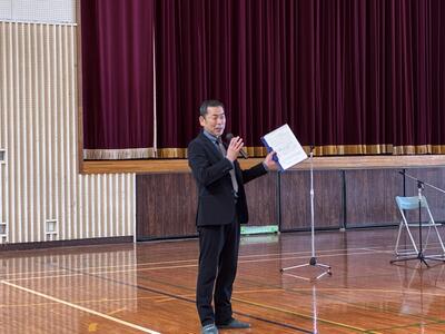 校長先生からは2学期の思い出についての振り返り、そして、「家庭での役割を見つけ、しっかりとそれを果たすこと」、「規則正しい生活を送って、元気に冬休みを過ごすこと」とお話がありました。