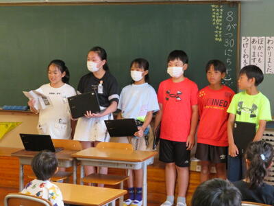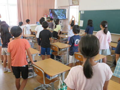 1~6年生全員が真剣な眼差しで集会に臨みました。