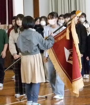 校旗の引継ぎ(6年生から5年生へ)