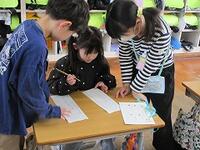 3月5日(水)に、時津中央保育園とひらき幼稚園の年長さんを招待して、学校生活について紹介する交流を行いました。1年生の1年間を伝えたり、一緒に学校探検をしたり、鉛筆の持ち方を教えて名前を書いたりする活動を行い、子供たちは、お兄さんお姉さんとして、パートナーの子をリードし、学校について一生懸命伝えていました。「小学校って楽しそう!」ということを伝えることを目標に頑張り、年長さんが帰ってからは、「いっぱいお話できた」「また教えてあげたいな」と達成感に満ち溢れていました。教えることの難しさを感じながらも、積極的に関わろうとする姿から、立派な2年生になりそうだと感じました。
