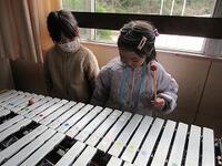 学校探検で音楽室にも行き、楽器も弾いてみました。