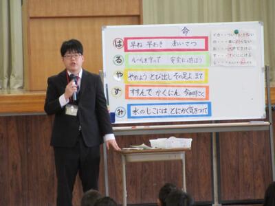 寒い日も暑い日も、子どもたちの登校の安全を毎日見守ってくださっている「見守り隊」の皆さんや銭太鼓浮立(ぜにだいこふりゅう)を教えてくださる地域の方などをお招きして、「学校サポーター感謝の会」が行われました。