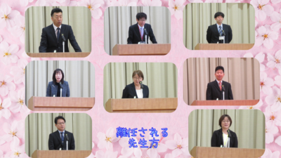 今回の人事異動と退職に伴い、先生方が鳴鼓小を転出されます。