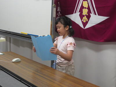 1年生は「たくさんの漢字を覚えて上手に書きたい。また、初めての鳴鼓っ子発表会を頑張りたい」と大きな声で発表しました。