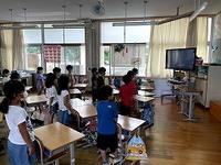 感染拡大防止のため、9月1日に集団下校は中止しました。そのかわりに、ビデオ放送を使って交通安全指導を行い下校させました。