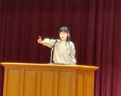 12月14日、長崎外国語大学ホールにて少年の主張大会が開催されました。たくさんのお客様の前で、練習の時以上に、堂々と発表できました。