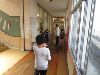 普段通りに掃除を始めると、ベルが鳴りました。すると、動きを止め、無言で放送に耳を傾ける姿がありました。